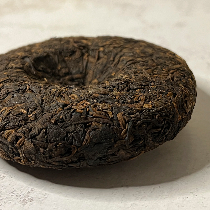 Этот пуэр выполнен в форме 100 громового мини блина. Пресовка этого блина не плотная, ломается руками без особых усилий.